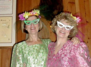 She and her friend Jeanne are forever trying to retire as the Pointless Sisters. Here they are at a friend's wedding reception where they were asked to be the entertainment. (It was a budget wedding) They came as the "jilted bridesmaids" and poked fun through song at the newlyweds. After nine years the groom has finally forgiven them.